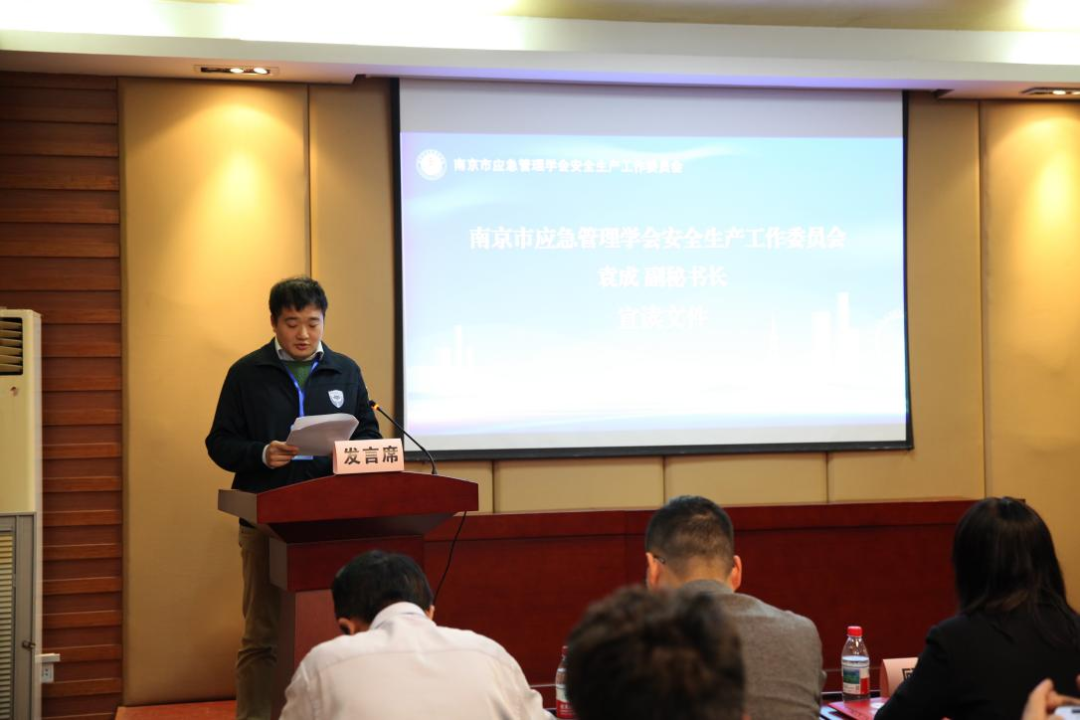 南信大应急管理学院院长薛勇,南信大管理工程学院院长巩在武,南信大应急管理学院副院长汪俊峰,南信大应急管理学院副院长、南京市应安委主任顾湘,南京新材料科技园企业协会会长、南京市应安委副主任陈福新出席会议。会议由南京市应安委副主任朱兆华和秘书长杨文渊分段主持。